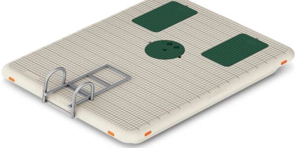 A 3000 lb capacity, 8x10 swim raft with a no slip surface. Multi angle back rests, pop up table with beverage holders and a folding ladder. Available in beige or yellow.